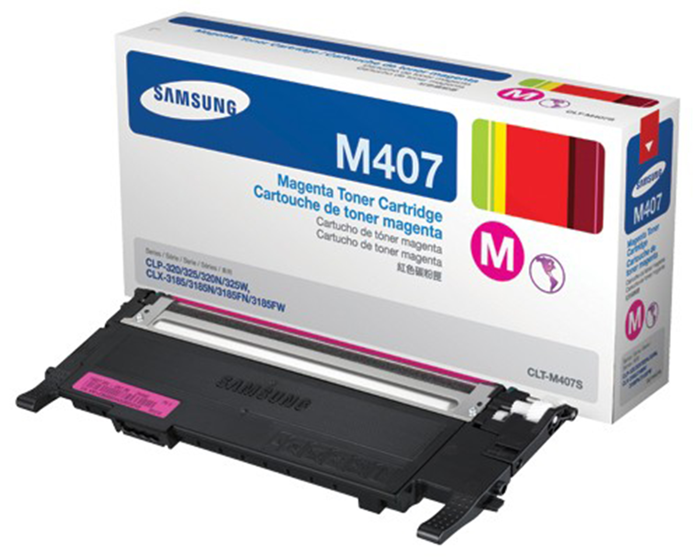 - Mã mực: Samsung CLT-M407S Magenta Toner Cartridge